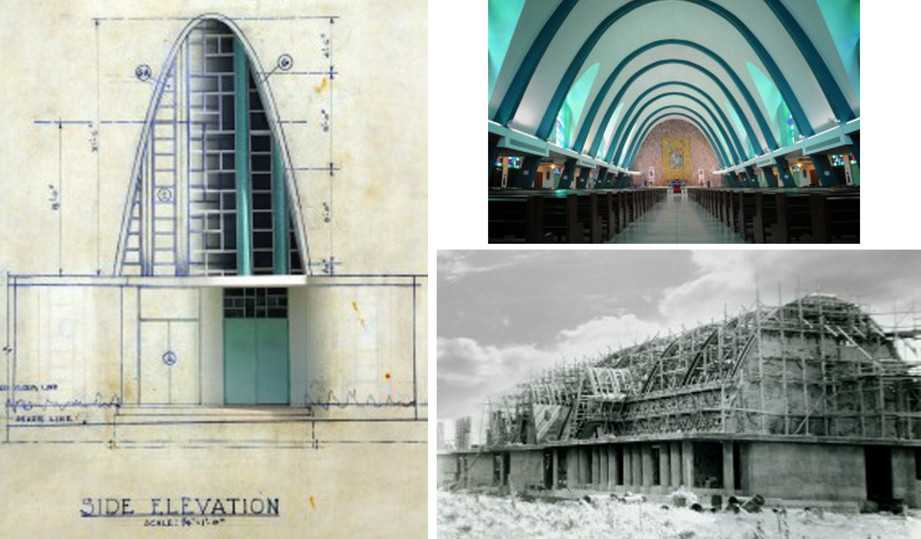La Firma inició el diseño en el 1955, comisionado por el entonces Obispo de Ponce y fundador de la PUCPR, Mons. James Mcmannus. Un majestuoso diseño arquitectónico, engalanado con vitrales arqueados que enmarcan una luz filtrada natural, así como su extensa y peculiar bóveda y sus detalles, hacen de esta obra una especial. En aquella época,  se convirtió en la Iglesia más grande y característica por sus avances arquitectónicos y estructurales. “La Iglesia constituyó, en aquel momento, el Templo de mayor tamaño en Puerto Rico. La bóveda de la Iglesia tiene 43 pies de altura, los vitrales, el templo y la capilla tienen elementos únicos que conformaron un avance ”, indicó el también profesor de la Escuela de Arquitectura de la PUCPR.  Por sus detalles, Badillo, cataloga su diseño como modernista, pero con una reinterpretación del estilo gótico.