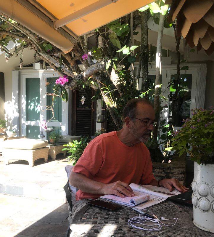Nuestro Decano preparando y practicando sus clases y trabajando asuntos de decanato (fotos #1 y #2), en reunión con el Vicepresidente de Asuntos Académicos (foto #3) y redactando un Artículo para AIA Florida Caribbean (foto #4).