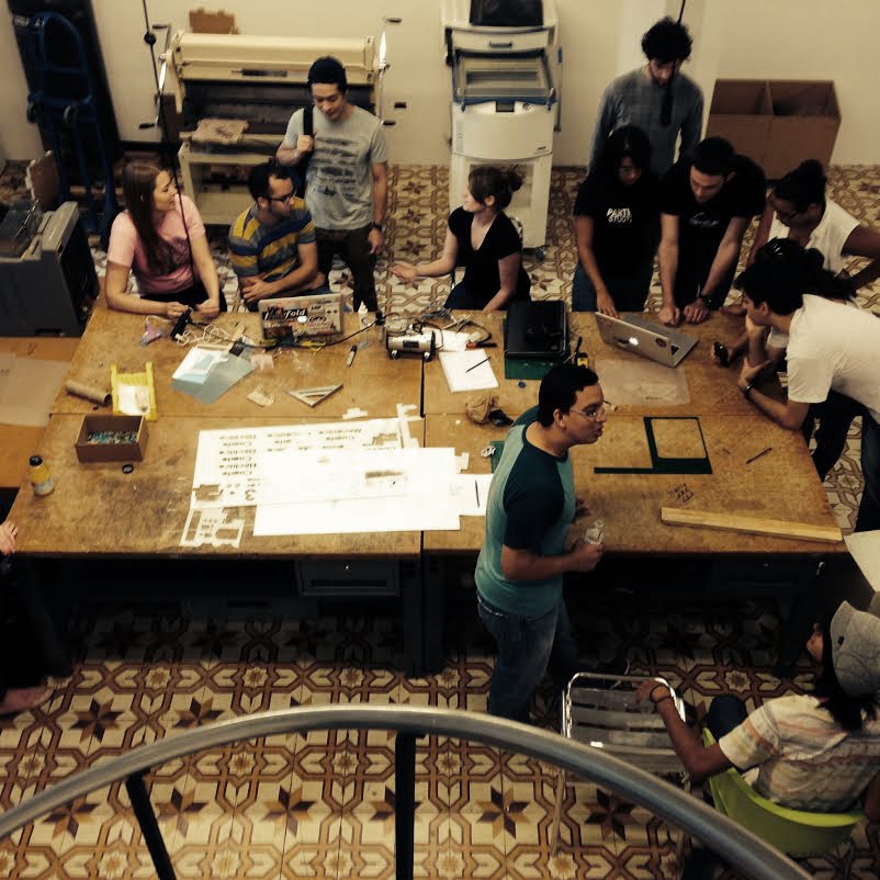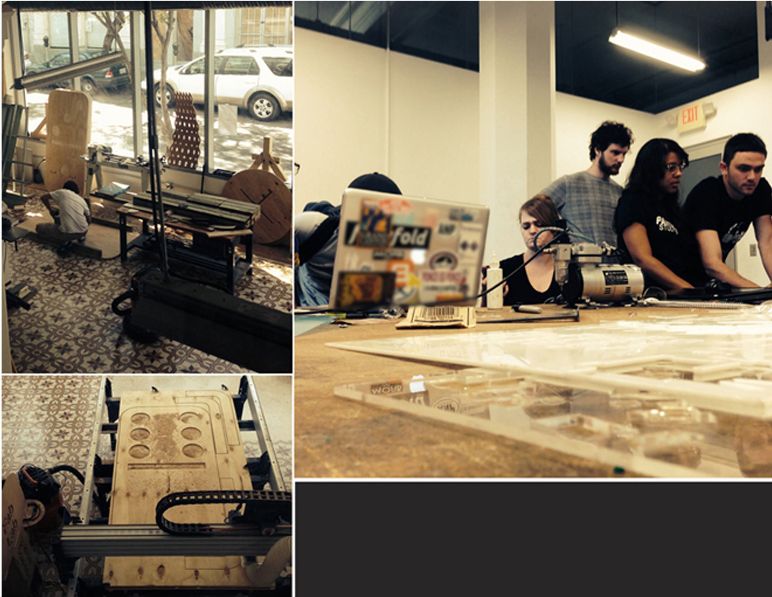 Durante el día de ayer miércoles, 13 de marzo de 2014 un grupo de estudiantes de la Escuela de Arquitectura de la PUCPR y estudiantes visitantes de la State University of New York [SUNY-ESF] comenzaron los trabajos de fabricación de los componentes de diseño a instalarse durante este fin de semana [15-16 de marzo] en la plaza del pueblo de Castañer.  Durante el día de hoy se continúa el proceso de fabricación y se estarán llevando los materiales al lugar de instalación.  Como parte del proceso de diseño y organización, el pasado martes, 11 de marzo de 2014 se llevó a cabo el taller de diseño con la comunidad local, donde el diseño propuesto fue adoptado y expandido con ideas comunitarias de arte público en el área de la tarima.