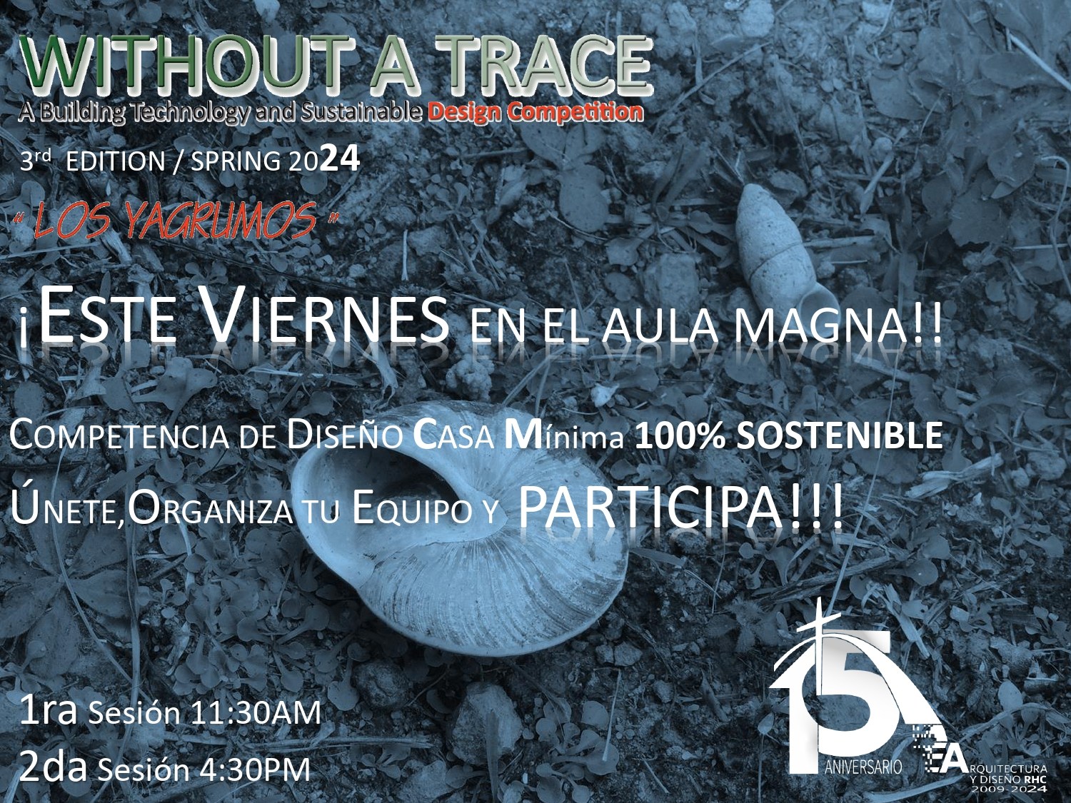 Te esperamos este próximo viernes 23 de febrero de 2024  en el Aula Magna de nuestra Escuela para que estés presente en el lanzamiento de Without A Trace 3ra edición y te enteres de todos los detalles para que participes en esta competencia de diseño sostenible. ¡Te esperamos AM o PM!