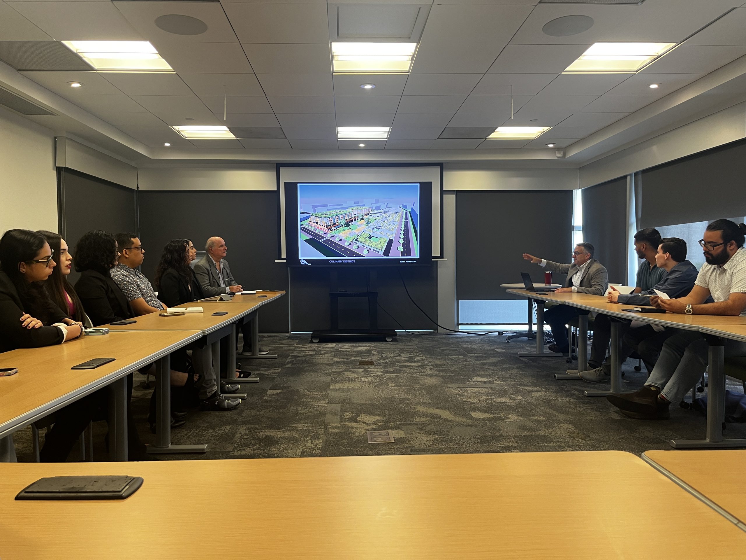 Además nuestros estudiantes asistentes que estuvieron la oportunidad de presentar también estuvieron presentes nuestro decano, el Arq. Luis V. Badillo Lozano, nuestro director, el Arq. Juan Emmanuelli, la Gerente de Diseño y Construcción de Bienes Raíces (BPPR), el Gerente de Proyectos de PopularCampus Development, el Sr. Juan de Jesús y al director de la Corporación del Desarrollo del Centro Financiero de Hato Rey, el Sr. Rafael Delgado,