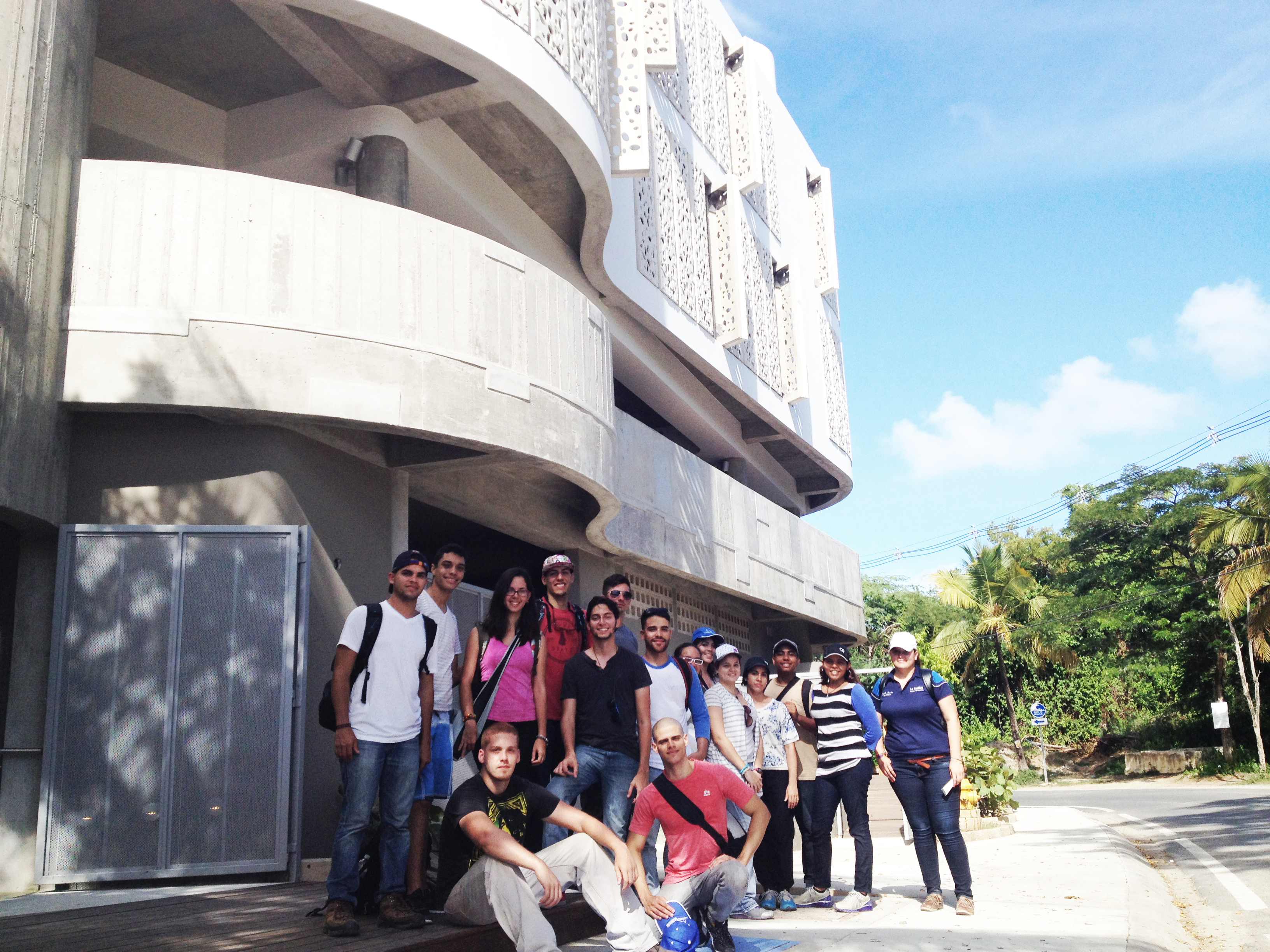 Estudiantes cursando su quinto año de arquitectura en la Pontificia Universidad Católica de Puerto Rico, estuvieron visitando la Isla Municipio de Vieques este pasado fin de semana del 11 al 13 de octubre, como parte del programa de internados establecido en dicha escuela de arquitectura a cargo de la profesora Tamara Orozco Rebozo. La razón de la visita fue para incorporarse en el proceso de diseño y construcción del Proyecto de Recuperación Ambiental de la Bahía Mosquito, bahía bioluminiscente de mayor importancia en el mundo. Este proyecto es uno que incorpora múltiples sectores, entre ellos el Departamento de Recursos Naturales y Ambientales, Protectores de Cuencas, el Fideicomiso de Conservación e Historia de Vieques, la Agencia de Protección Ambiental (EPA por sus siglas en inglés) y la comunidad viequense que usa y disfruta de tan importante recurso. El proyecto busca atender el problema de sedimentación que estaba teniendo la Bahía como consecuencia de falta de infraestructura de acceso adecuada para los concesionarios que ofrecen visitas guiadas y para el público en general. La propuesta de recuperación ambiental incorpora técnicas de intraestrcutura verde con pavimentos permeables, jardines pluviales, trincheras de Vetiver, canales permeables de rocas, y una extensa mitigación con especies nativas apropiadas para el contexto de la Bahía Mosquito.