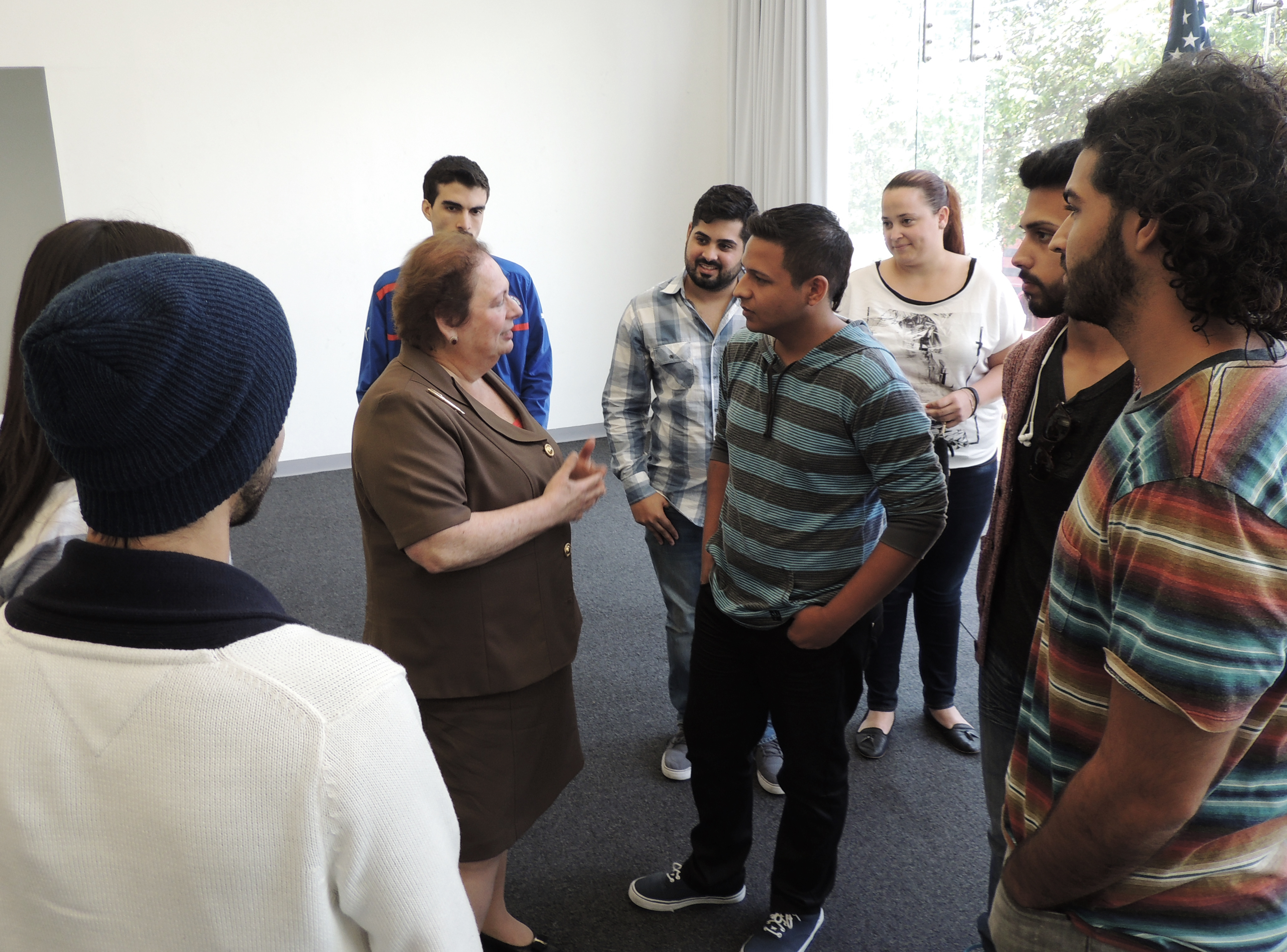 Estudiantes de Arquitectura comparten junto a la Embajadora, quien entre risas y anéctodas les motiva a liderar su profesión y servir a los Estados Unidos y a Puerto Rico con entusiasmo.
