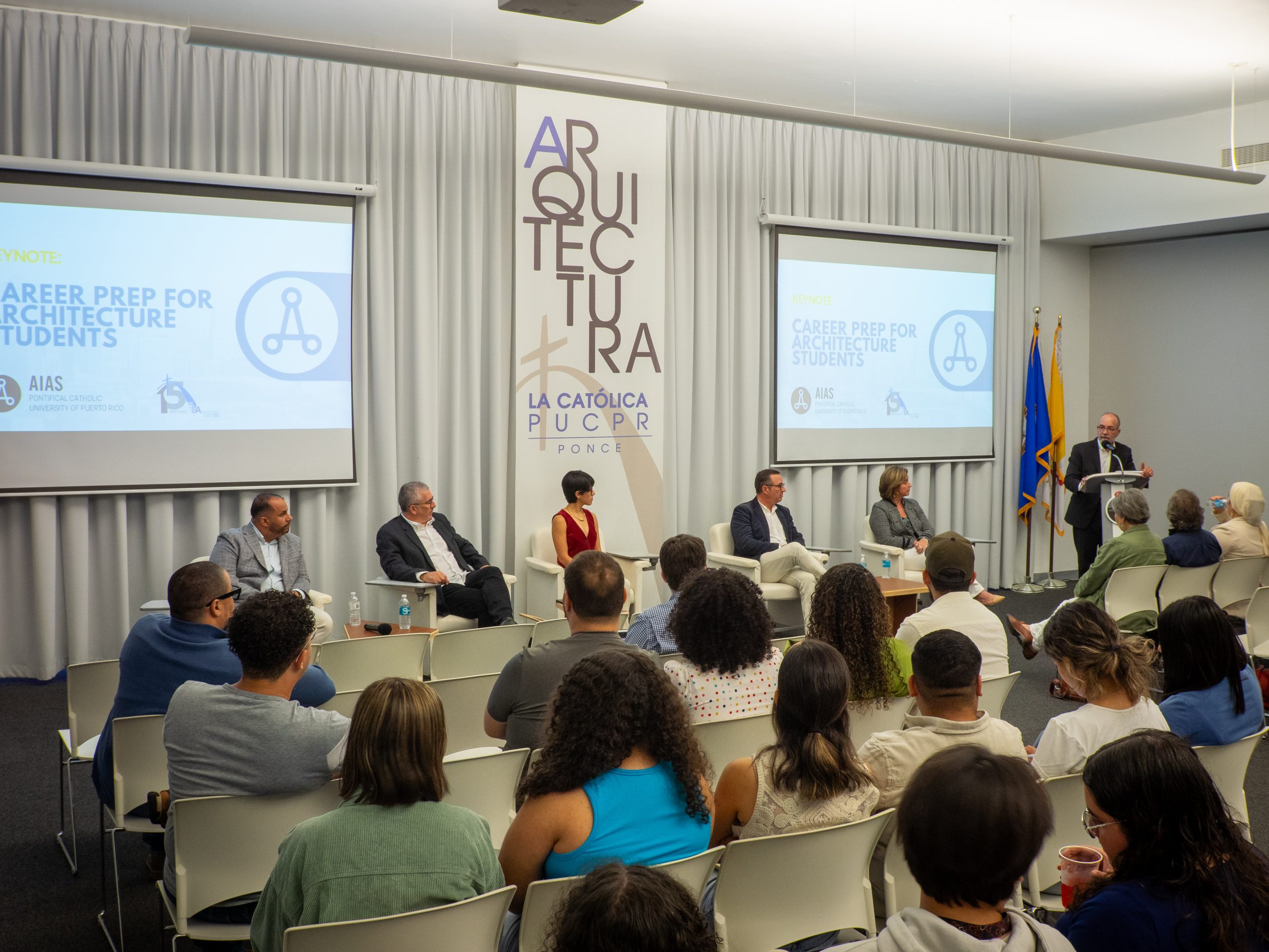 Nuestro capítulo de la American Institute of Architecture Students (AIAS) celebró su Keynote sobre la “Preparación rumbo una Carrera en Arquitectura” con el Arq. Juan Emmanuelli, Director de Programas de nuestra Escuela, los profesores Andrea Monroig y Ramón Ayala y el arquitecto invitado, el Arq. Luis Ayala Rubio.
