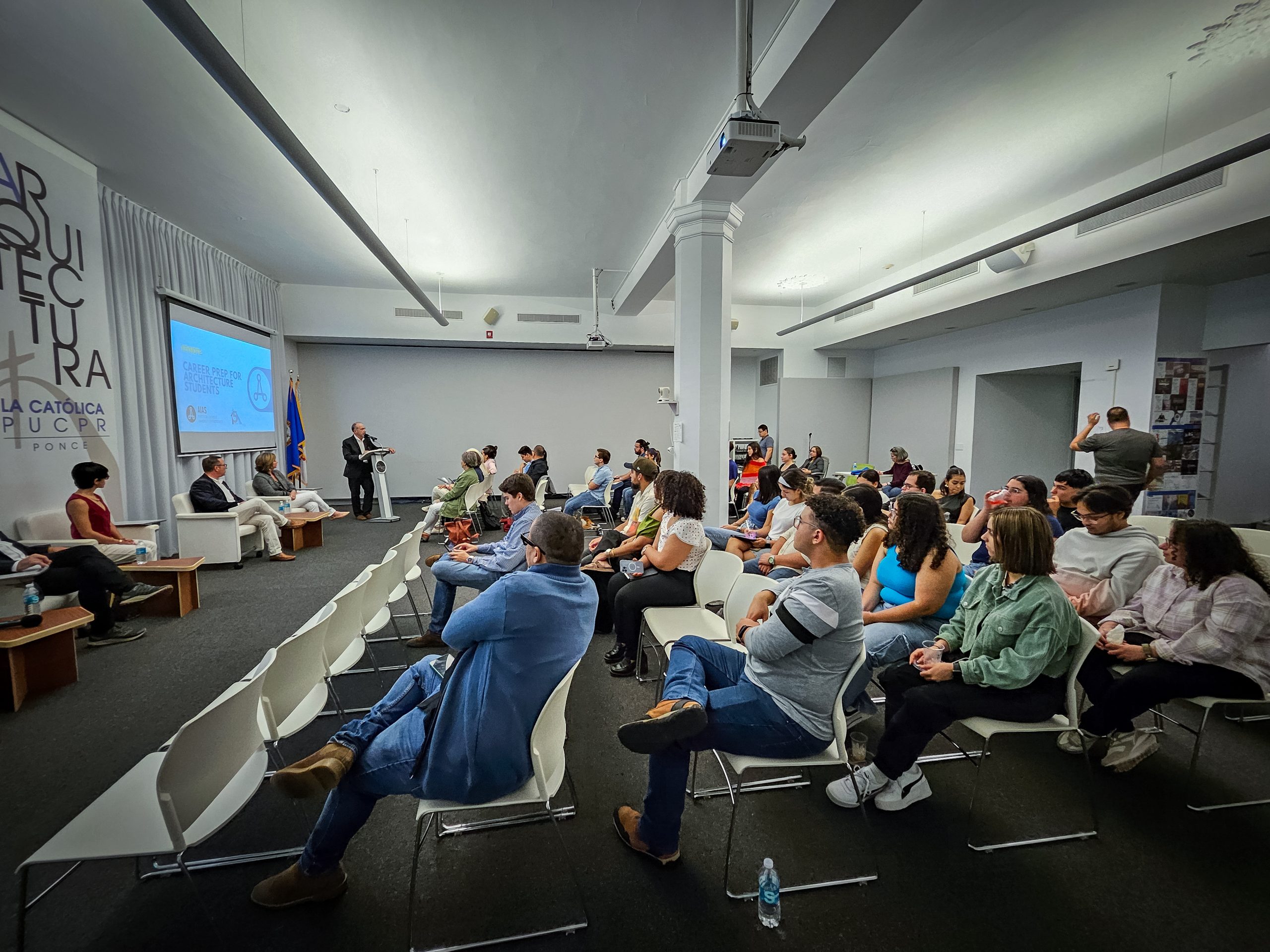 Nuestro capítulo de la American Institute of Architecture Students (AIAS) celebró su Keynote sobre la “Preparación rumbo una Carrera en Arquitectura” con el Arq. Juan Emmanuelli, Director de Programas de nuestra Escuela, los profesores Andrea Monroig y Ramón Ayala y el arquitecto invitado, el Arq. Luis Ayala Rubio.