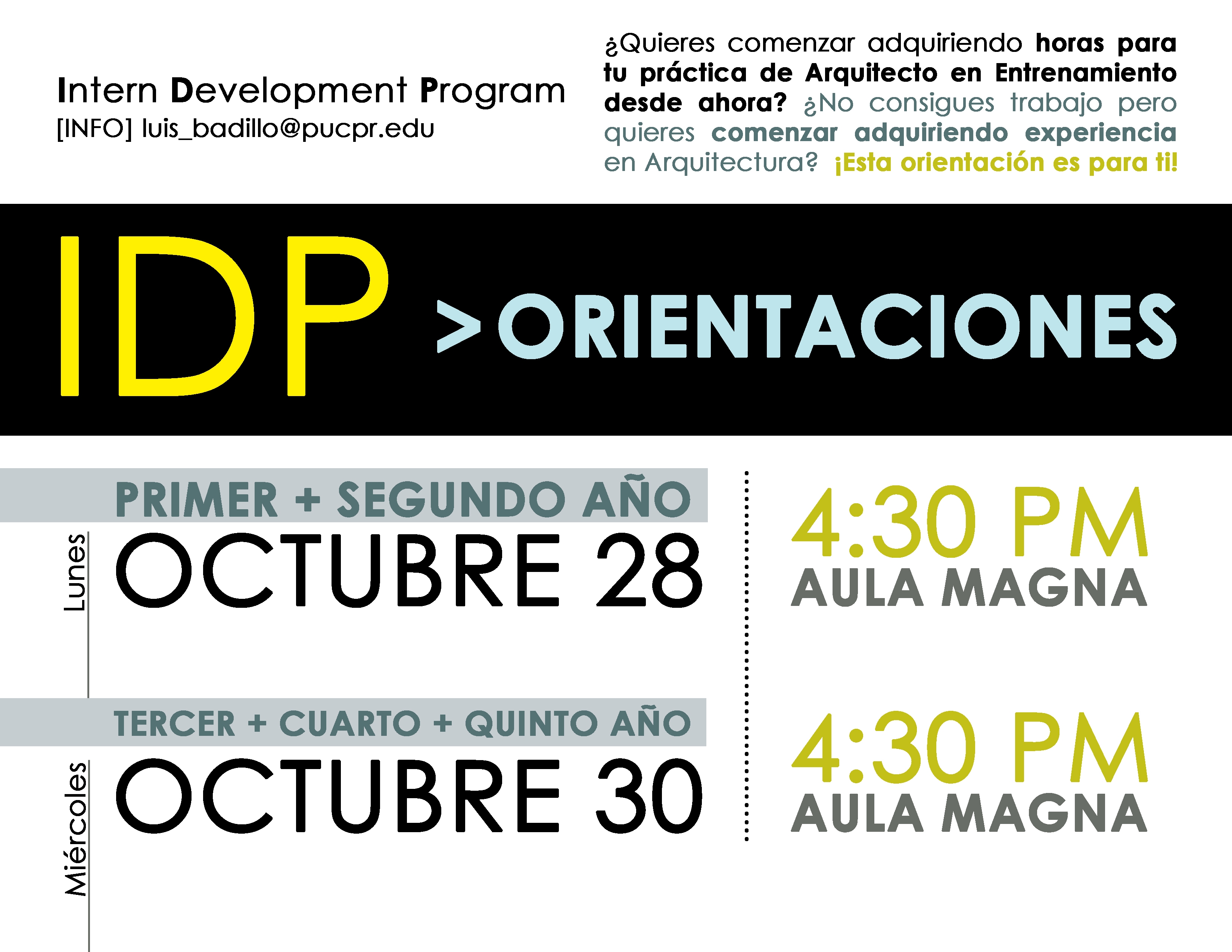 ORIENTACIONES: INTERN DEVELOPMENT PROGRAM [IDP] By Jonathan Maldonado | October 11, 2013 | Comments Off on ORIENTACIONES: INTERN DEVELOPMENT PROGRAM [IDP] Posted in Announcement