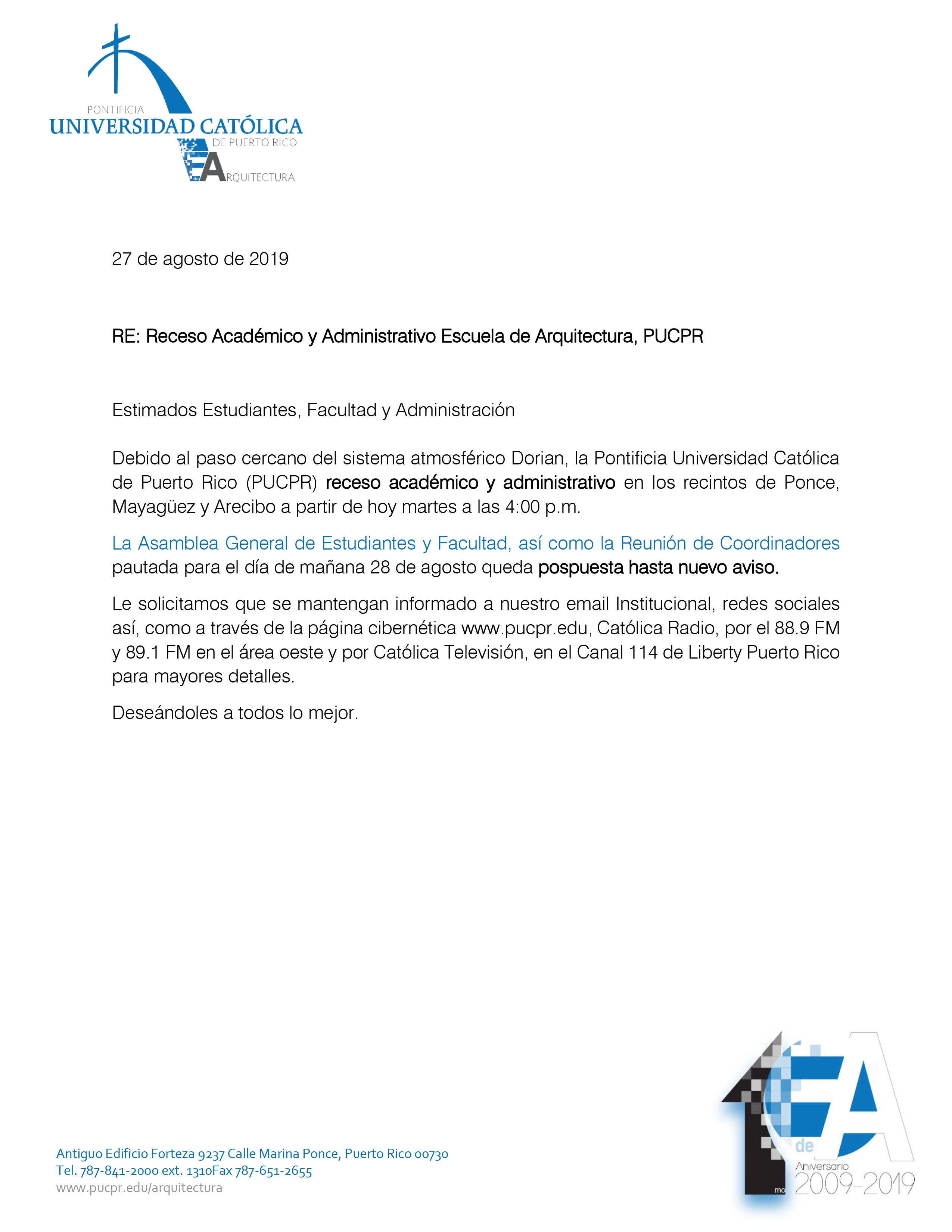 Aviso de Receso Academico By Jonathan Maldonado | August 27, 2019 | Comments Off on Aviso de Receso Academico