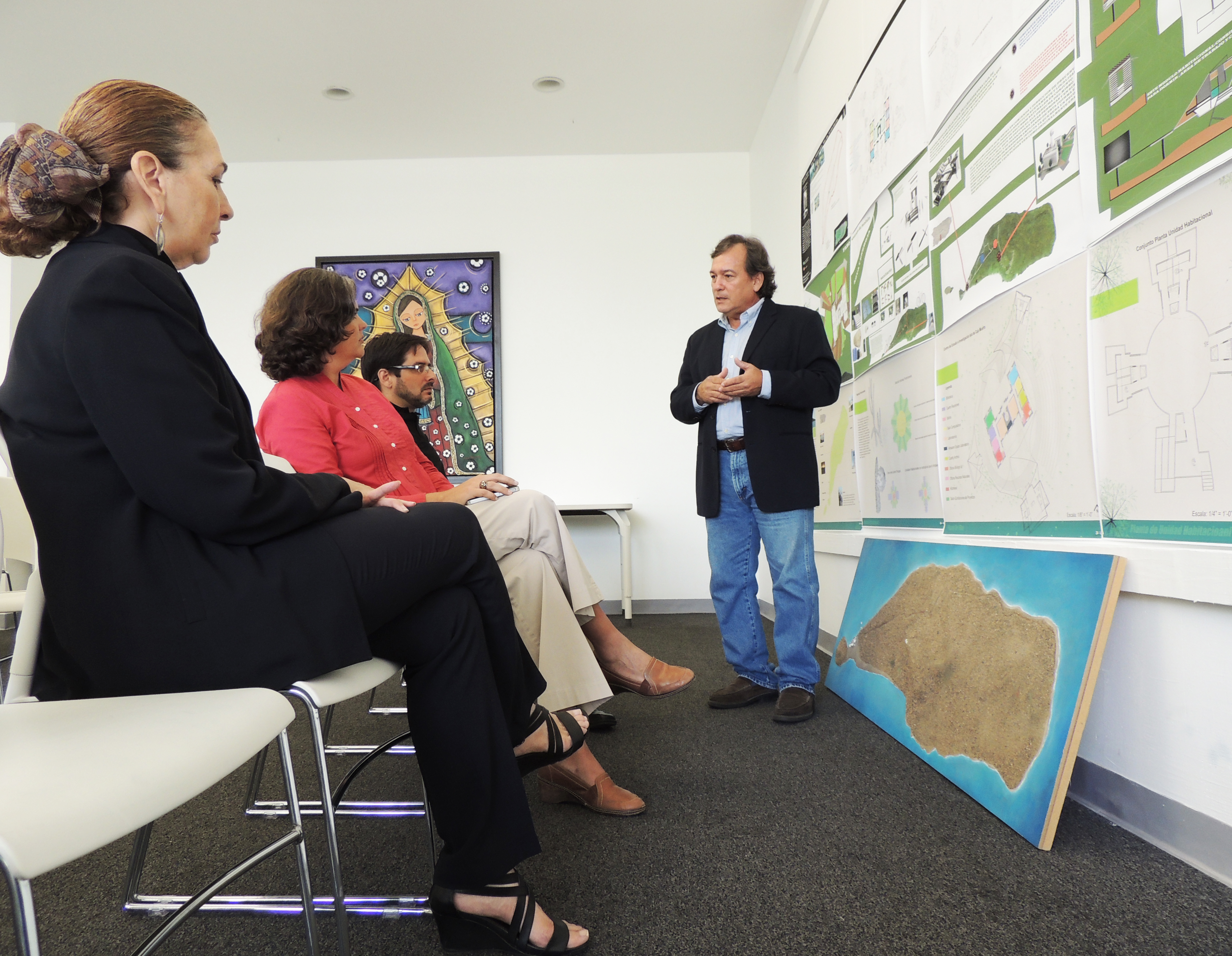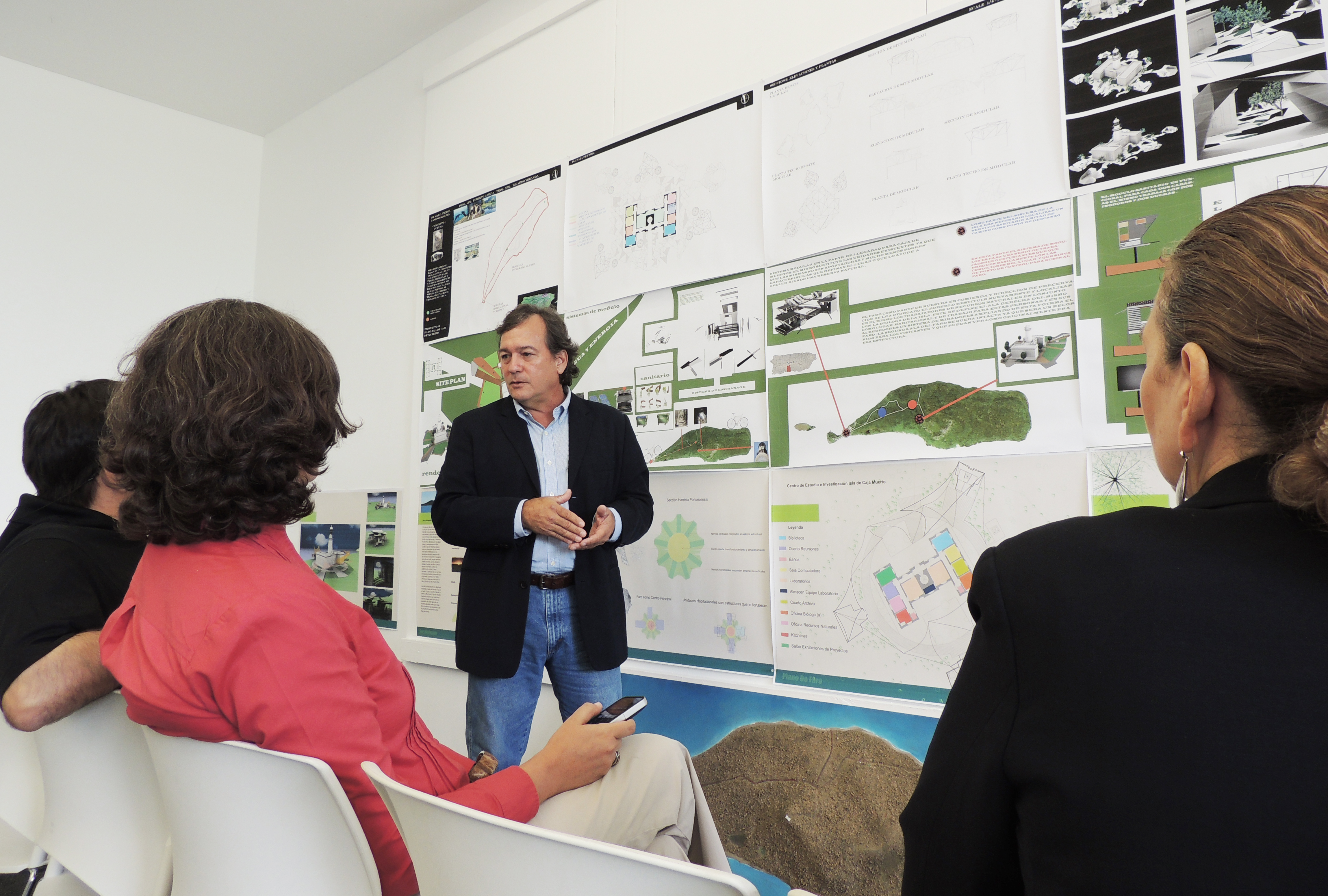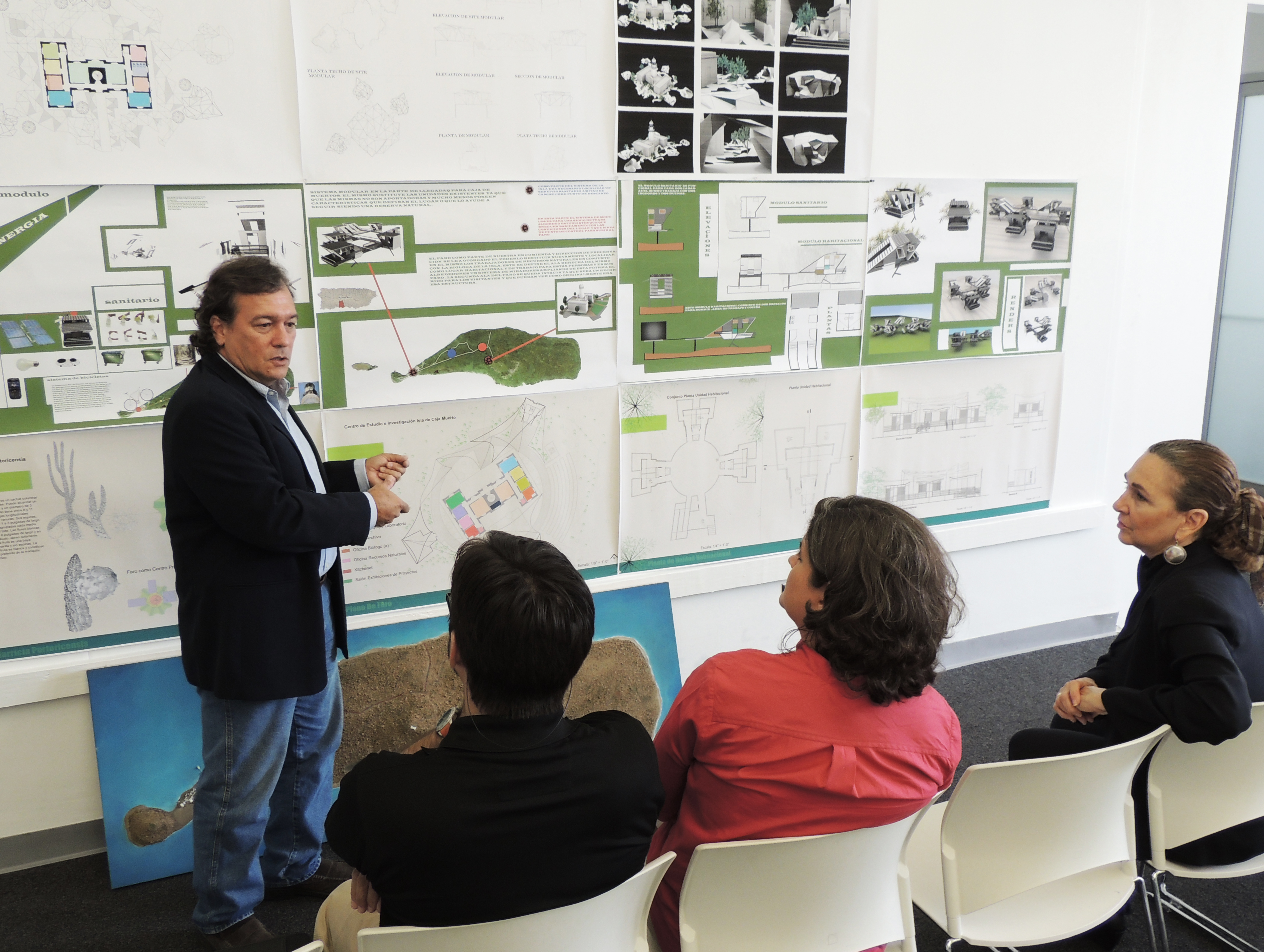 En la mañana de hoy, la Sra. Carmen Guerrero, Secretaria de Recursos Naturales y Ambientales(DRNA) visitó la Escuela de Arquitectura.  La facultad de la Unidad Experimental de Preservación y Conservación Adaptiva presentó el proyecto de investigación y propuestas para el Faro de Isla de Caja de Muerto.   En la presentación estuvo presente el Dr. Edgardo González, la arquitecta Mariela Cruz de la Oficina del Gobernador, el arquitecto Edgardo Afanador de la Compañia de Turismo, los profesores Magda Bardina y Roberto García, y nuestro Decano Javier De Jesús Martínez.  La Escuela de Arquitectura trabaja en un acuerdo colaborativo con el DRNA el cual será de gran impacto para el país y nuestra comunidad universitaria.